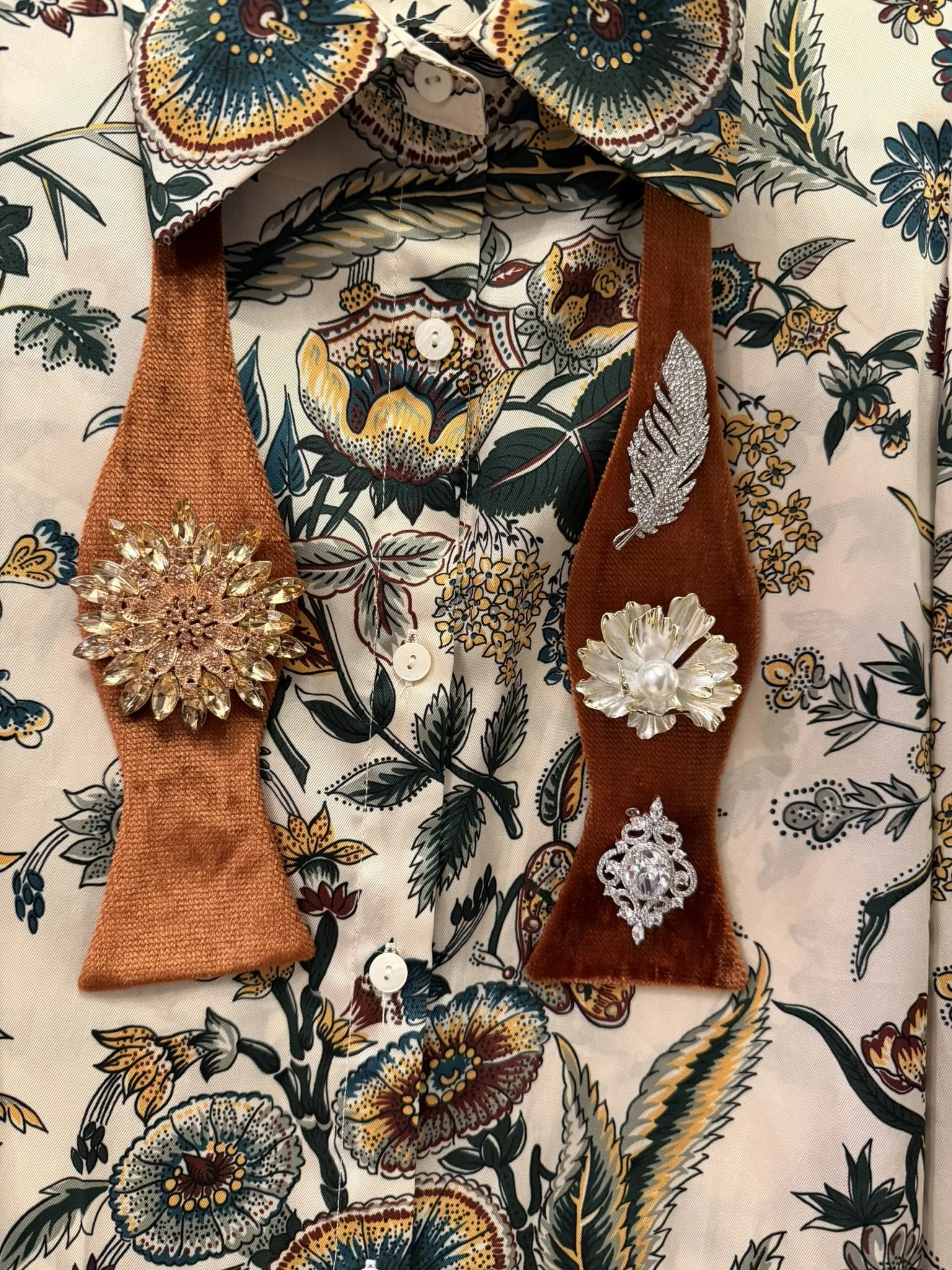 Melissa has always believed that style is a conversation—one shaped by heritage, intuition, and the small details that speak louder than trends. Bow & Brooch™ began the moment she draped one of her great-grandmother’s brooches across a men’s bowtie and felt something click: legacy could be modern, and elegance could be quietly loud.